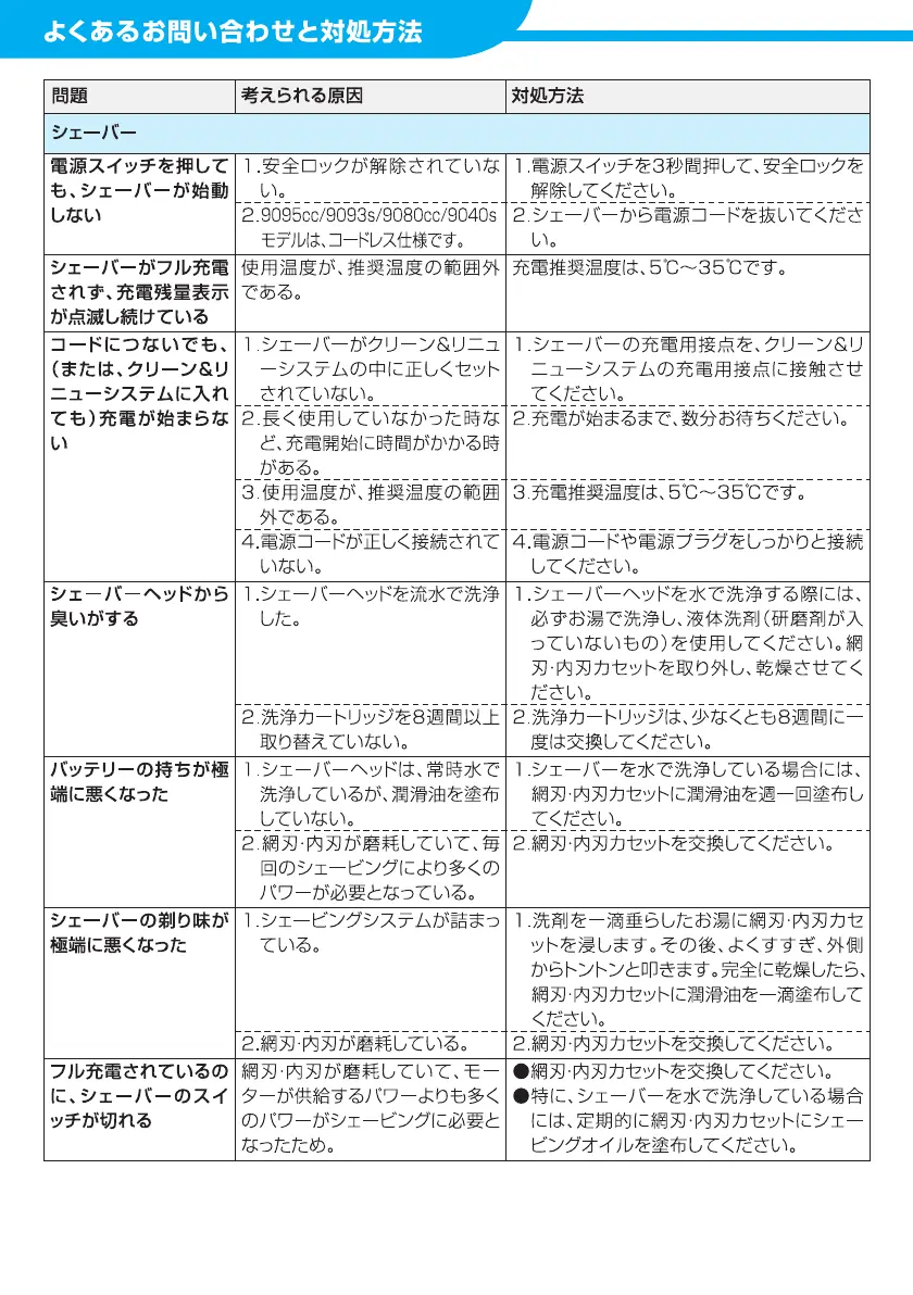 Braun 9090cc - Troubleshooting FAQs; Shaver Start and Charging Issues; Battery Performance Problems; Shaving Quality Issues