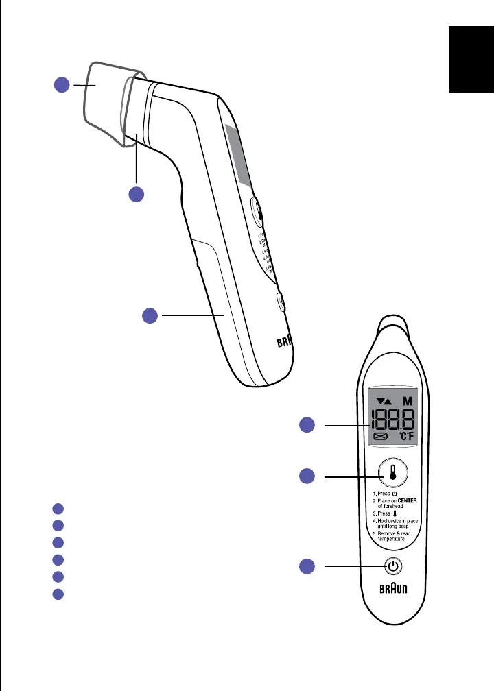 Braun BFH 125 - Braun Forehead Thermometer Overview; Labeled Device Components; Quick Start Usage Steps