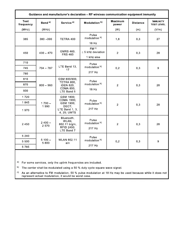 Braun BFH175 - RF Wireless Communication Immunity; RF Immunity Test Parameters