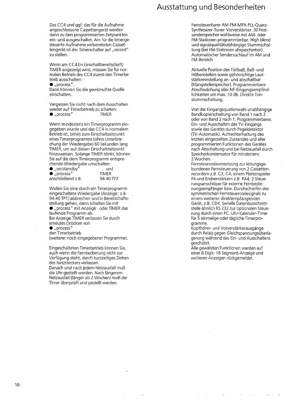 Braun CC4 - Timerbetrieb; Ausstattung und Besonderheiten
