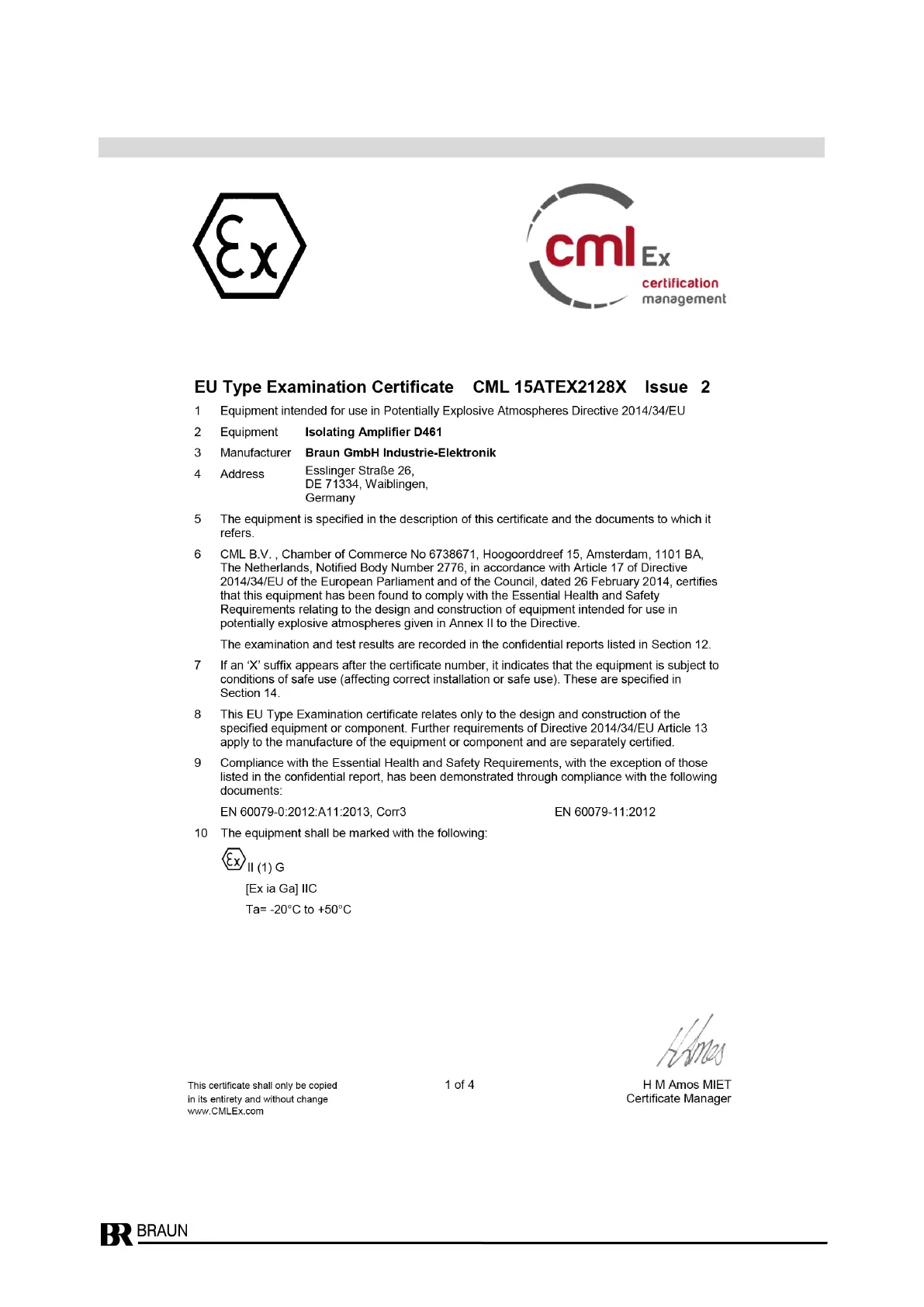 Braun D461R1 - ATEX EU Type Examination Certificate