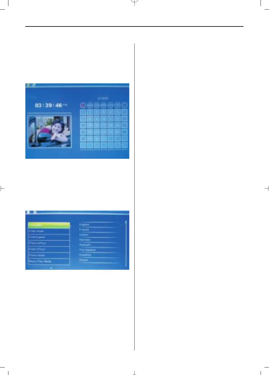 Kies in het hoofdmenu Kalender en druk op 왘II om