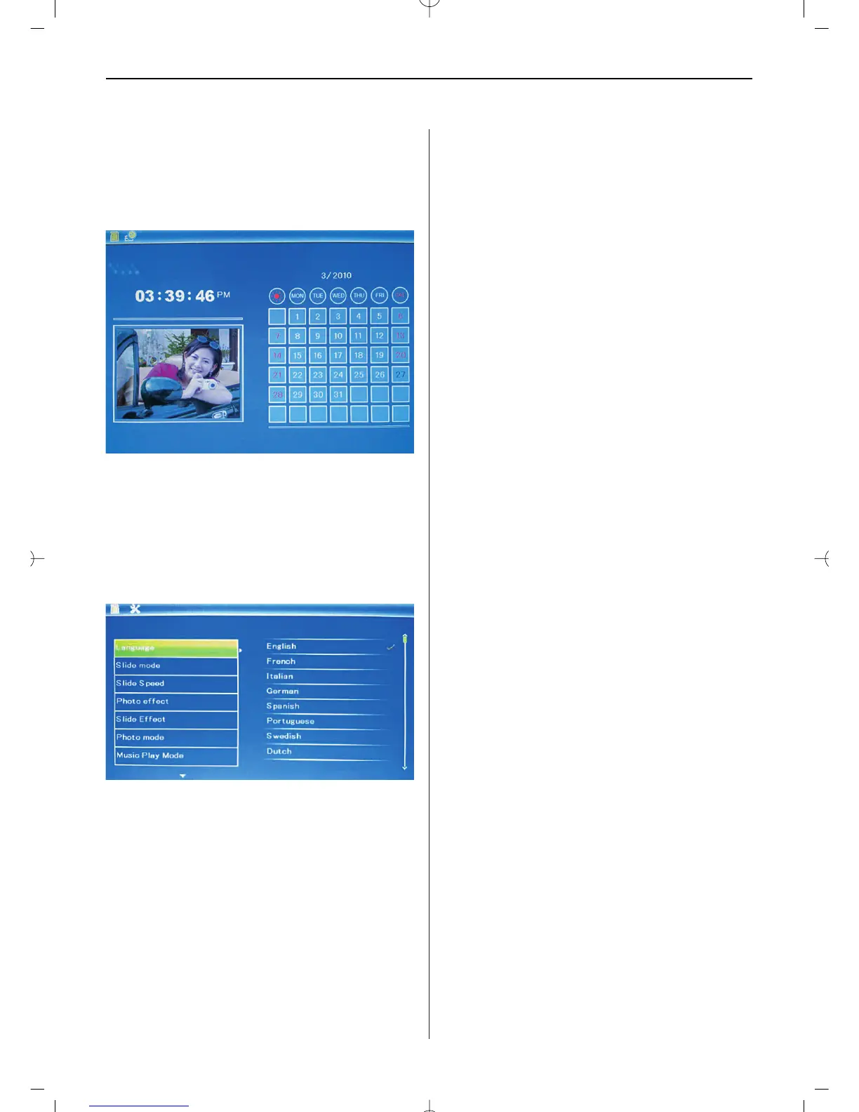 6.11 Auto Power On/Off: Press OK (왘II), choose