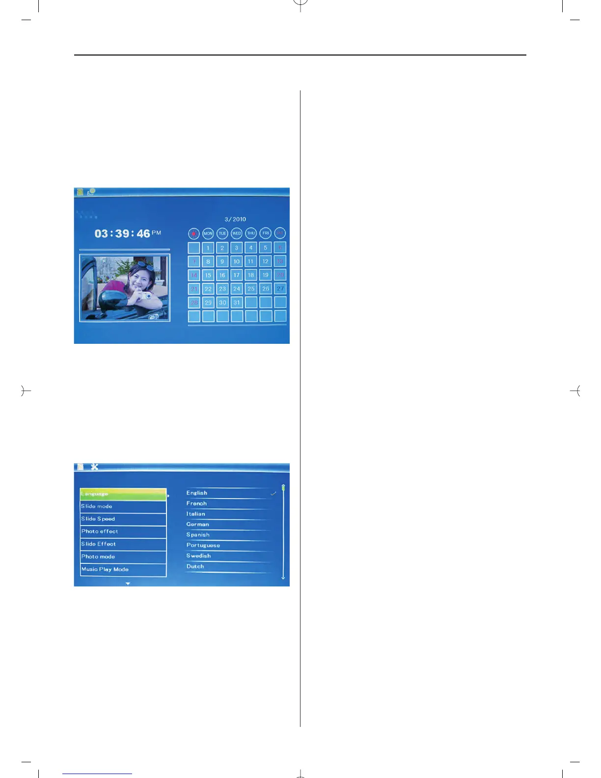 setas 왖왔 e depois prima 왘II, para confirmar.