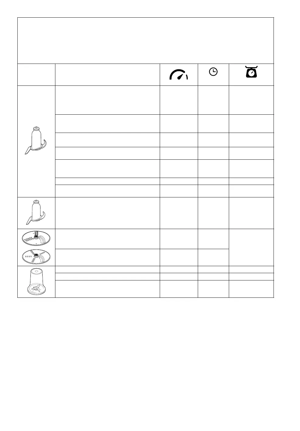 Do not operate your appliance for longer than the times specified below without a rest period. Processing