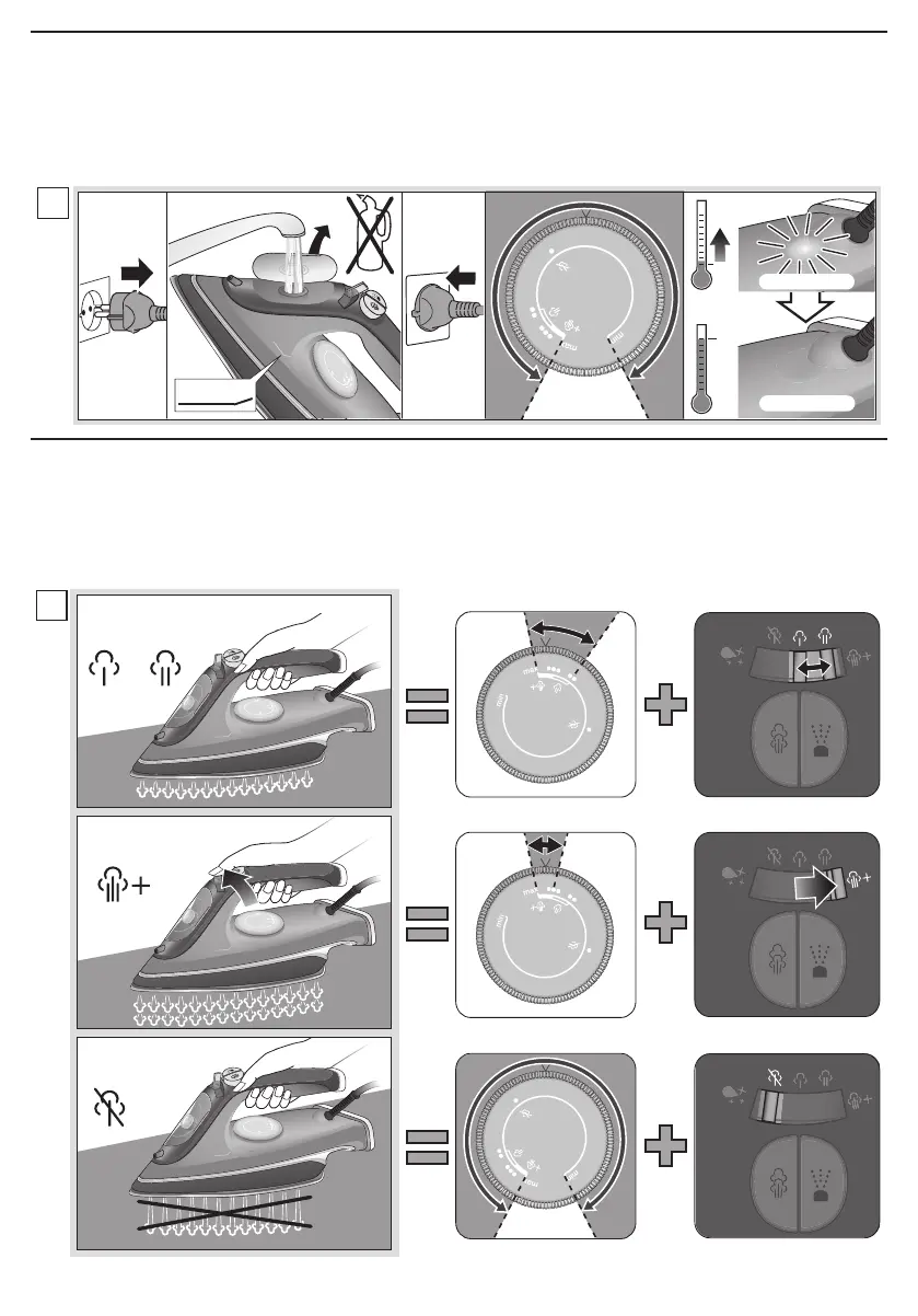DE Dampfeinstellungen / EN Steam settings / FR Réglages de vapeur / ES Ajustes de vapor / PT Definições