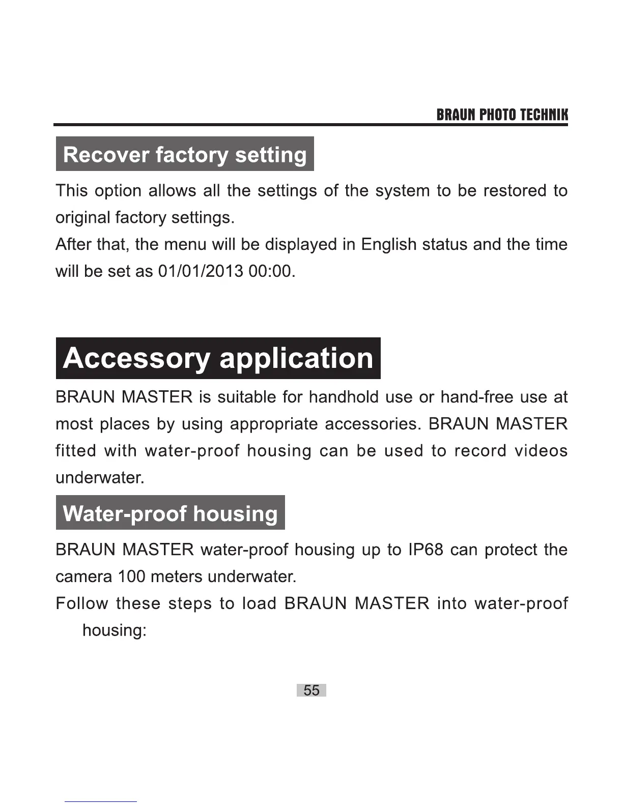Braun MASTER - Recover factory setting