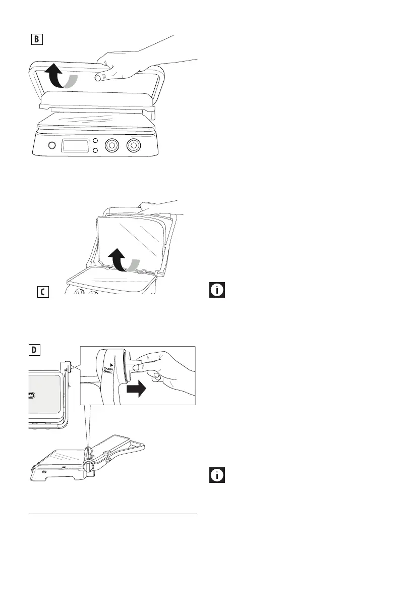 - Wenn die obere Grillplatte angehoben wird, entsperrt