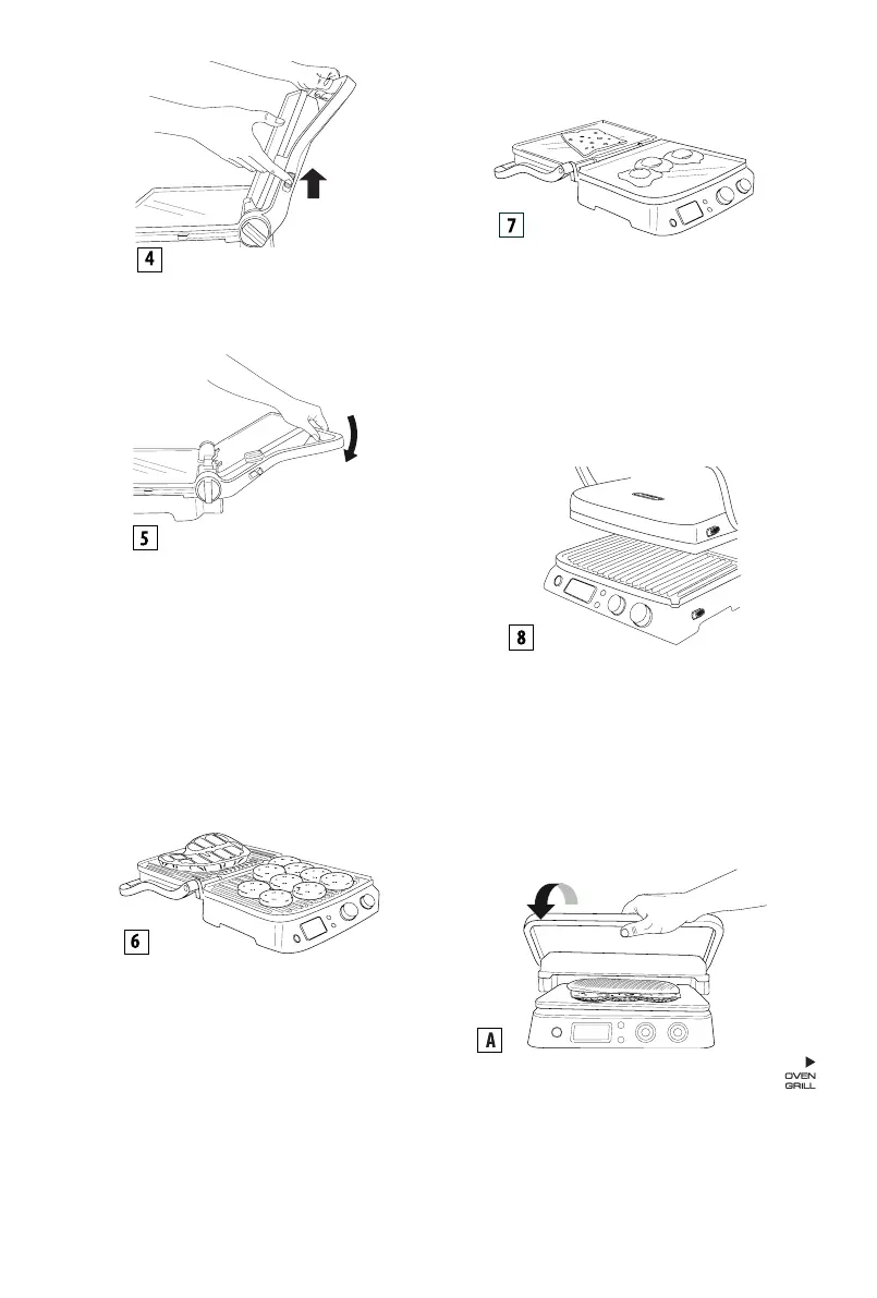 - Die obere Grillplatte wird in ihrer Stellung arretiert. Es