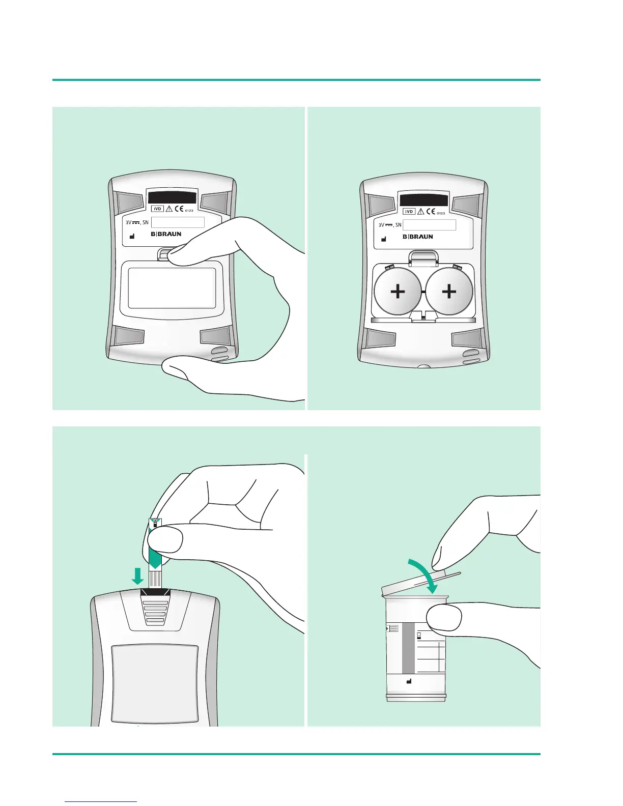 Insert test strip Close test strip vial