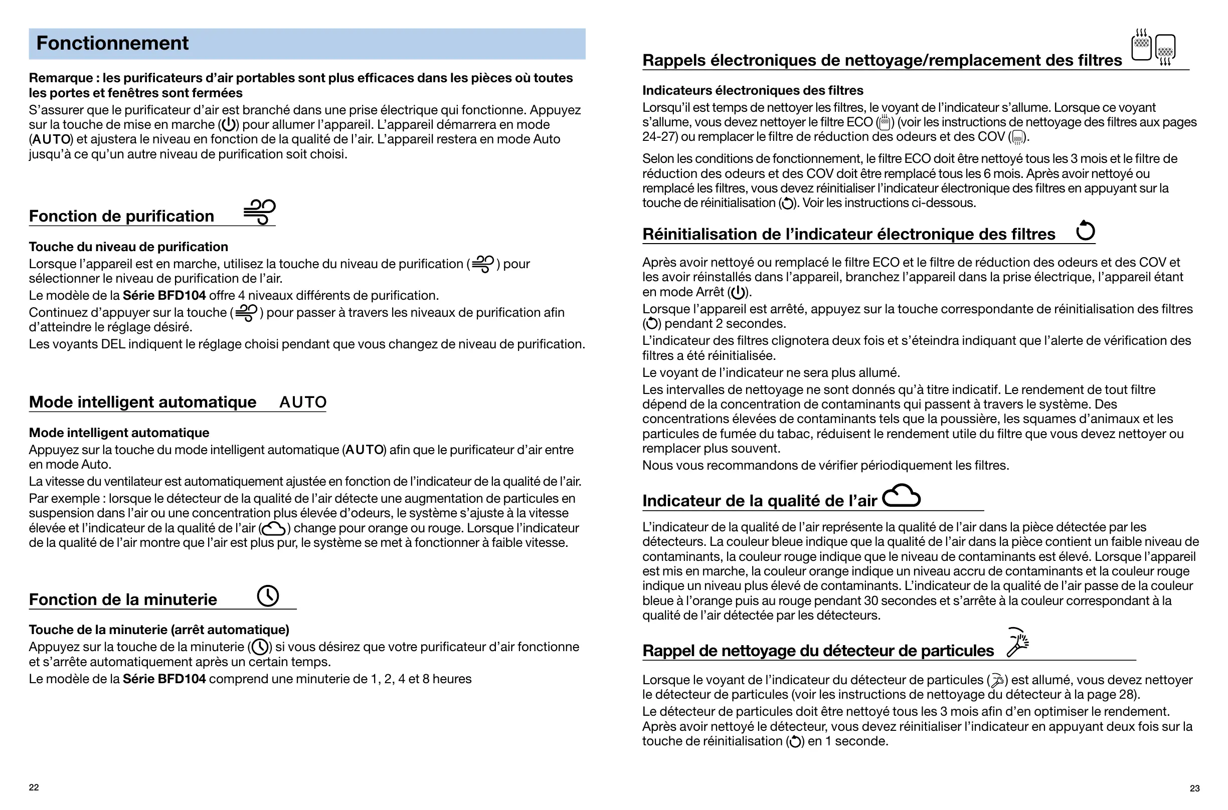( ) et ajustera le niveau en fonction de la qualité de l’air. L’appareil restera en mode Auto