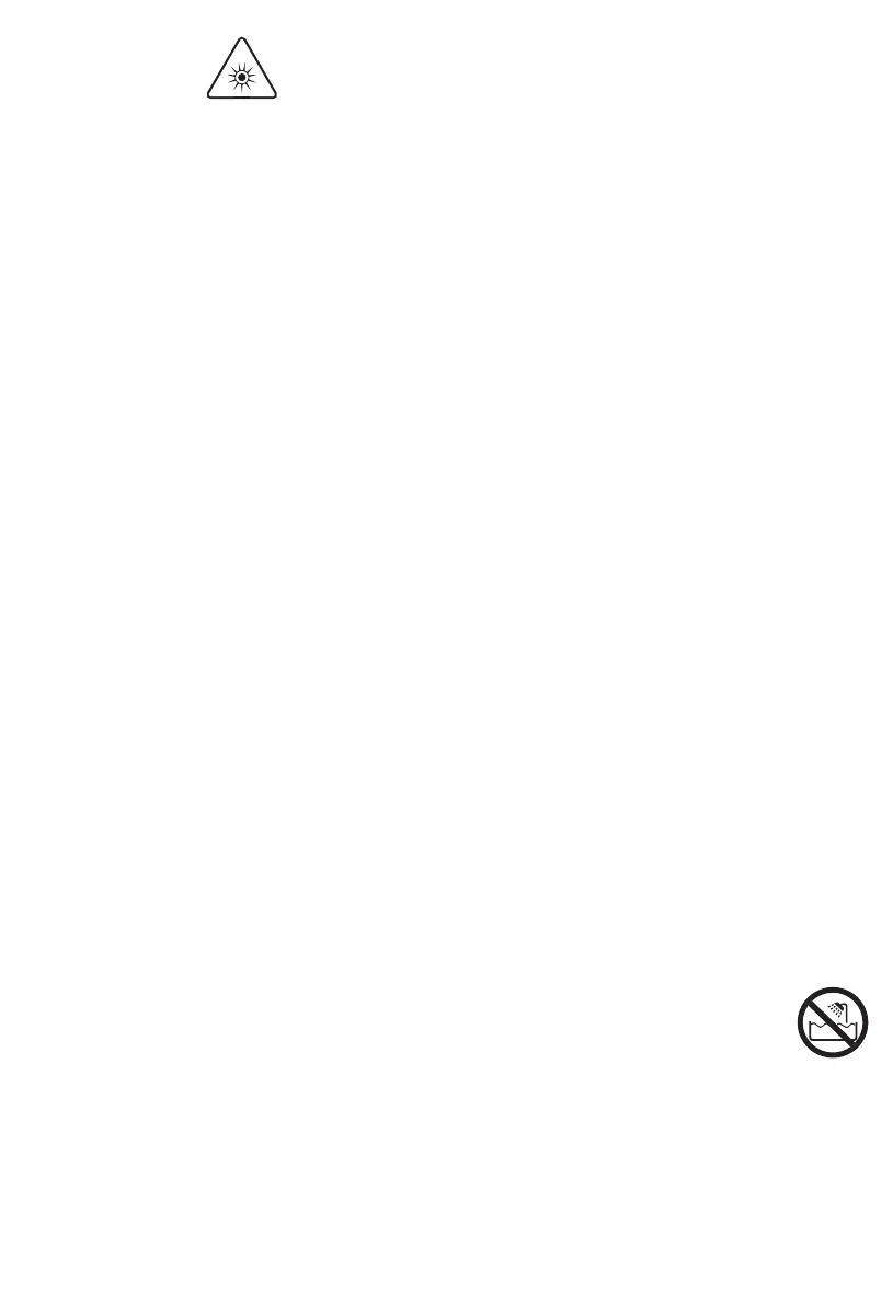 Titta inte direkt in i glasfiltret (3) eller försök aktivera apparaten mot ögonen. För att