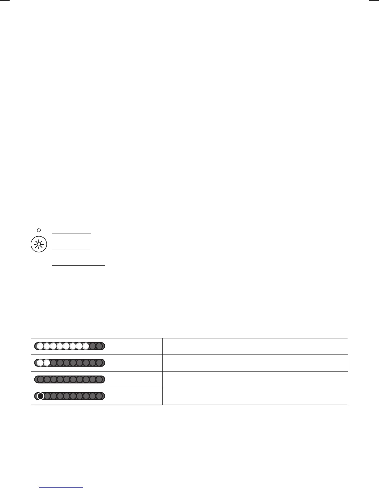 Kímélő mód: A (4) gombot megnyomva a készülék csökkentett fényerősséggel üzemel. A jelzőfény