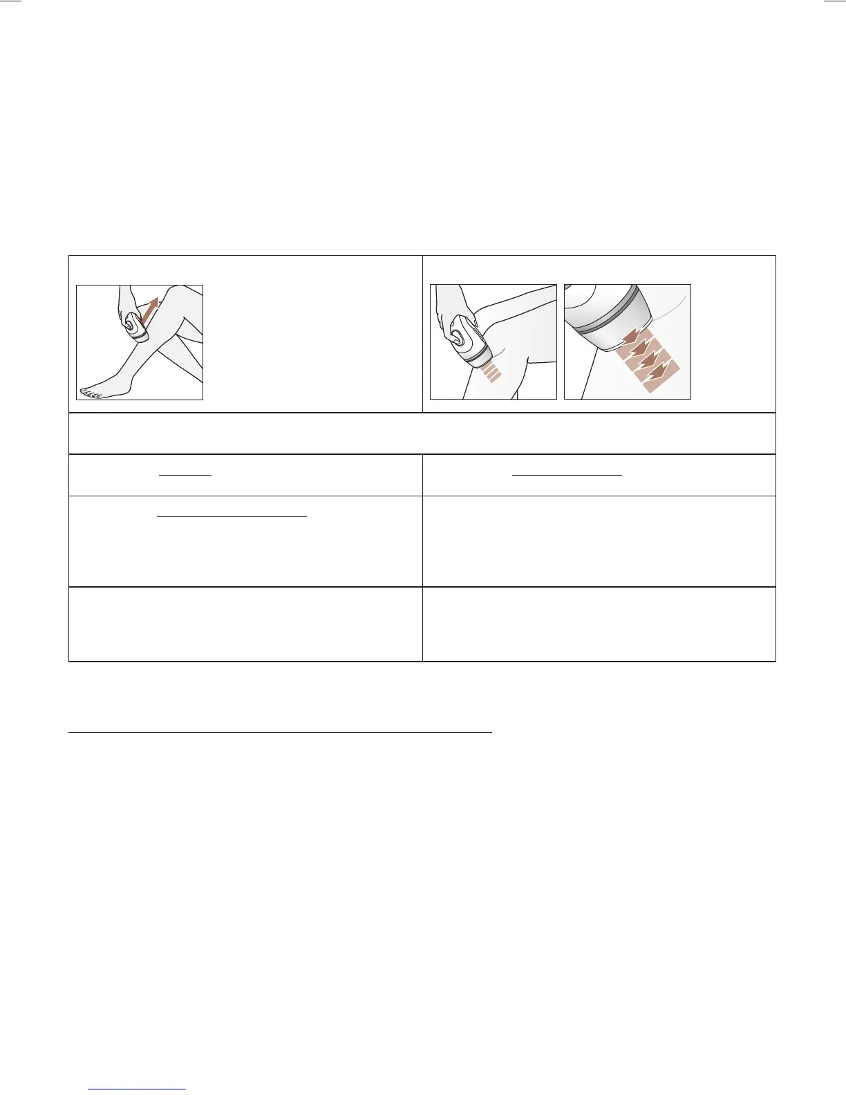 Način drsenja omogoča hitro in učinkovito uporabo ter je priporočljiv za uporabo na večjih območjih kože (npr.