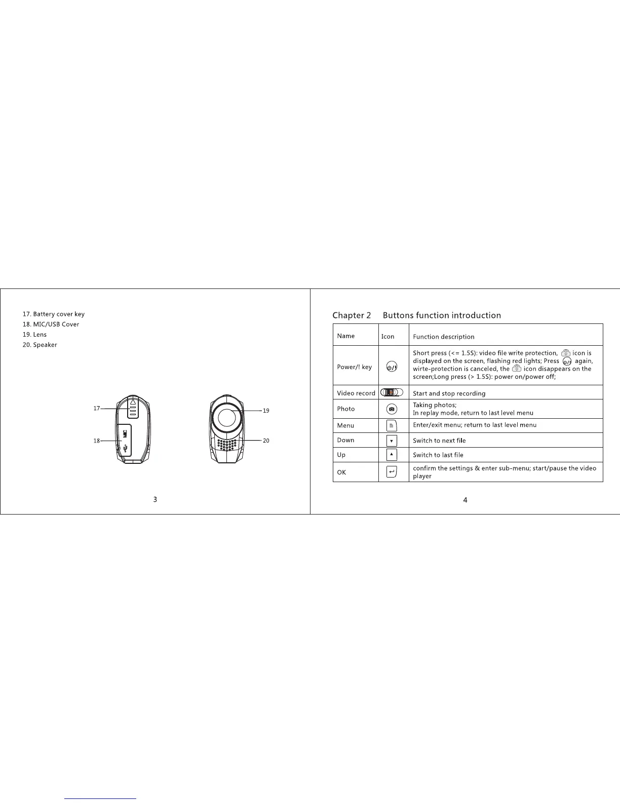 Braun SixZero - Buttons Function Introduction; Power;! Key Operation; Video Record Button; Photo Button