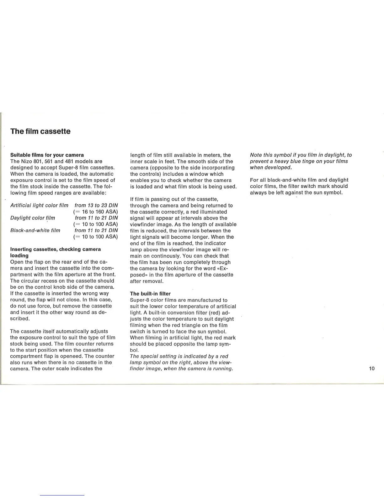 the film stock inside the cassette. The fol-