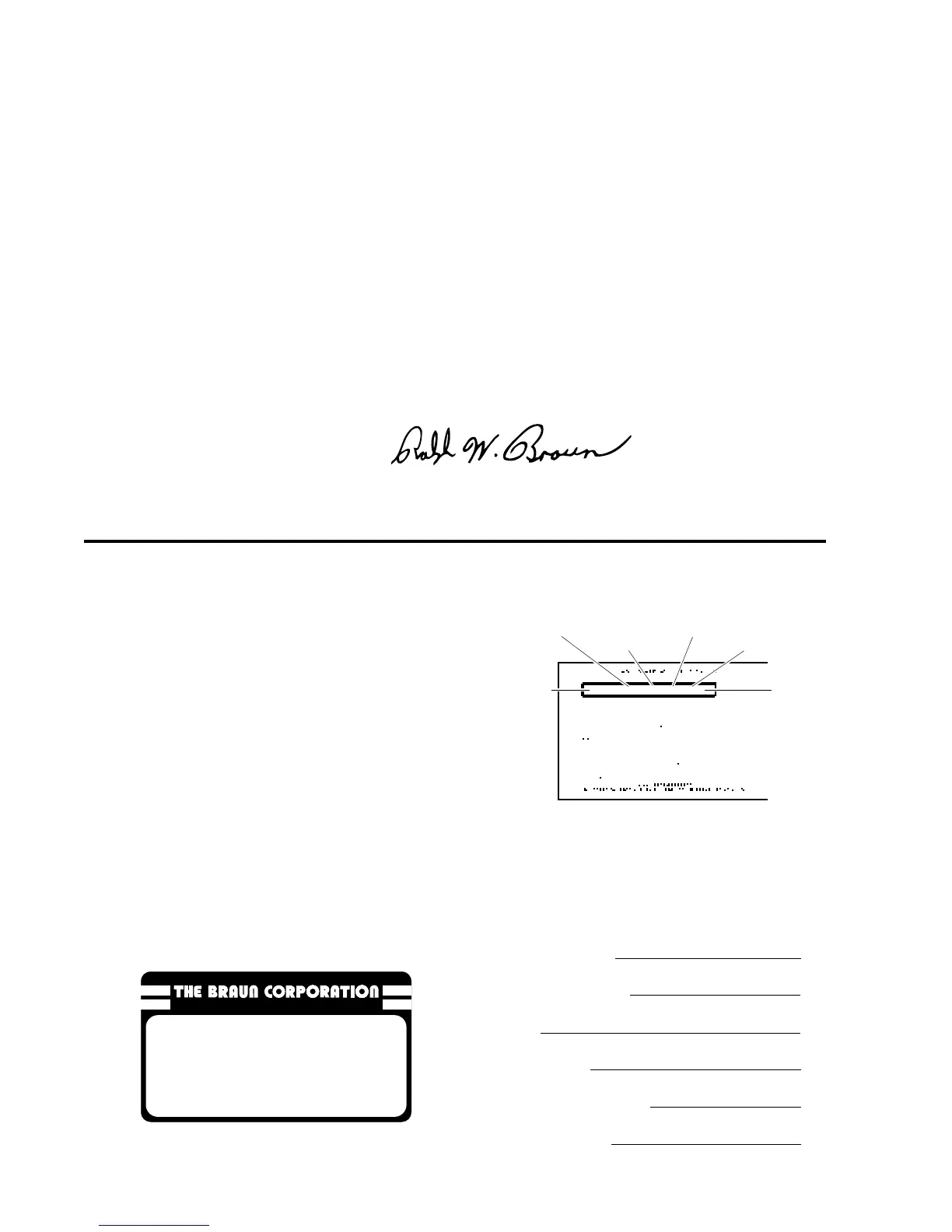 The Braun Serial No./Series No. identification decal (shown below) is located on the Entervan