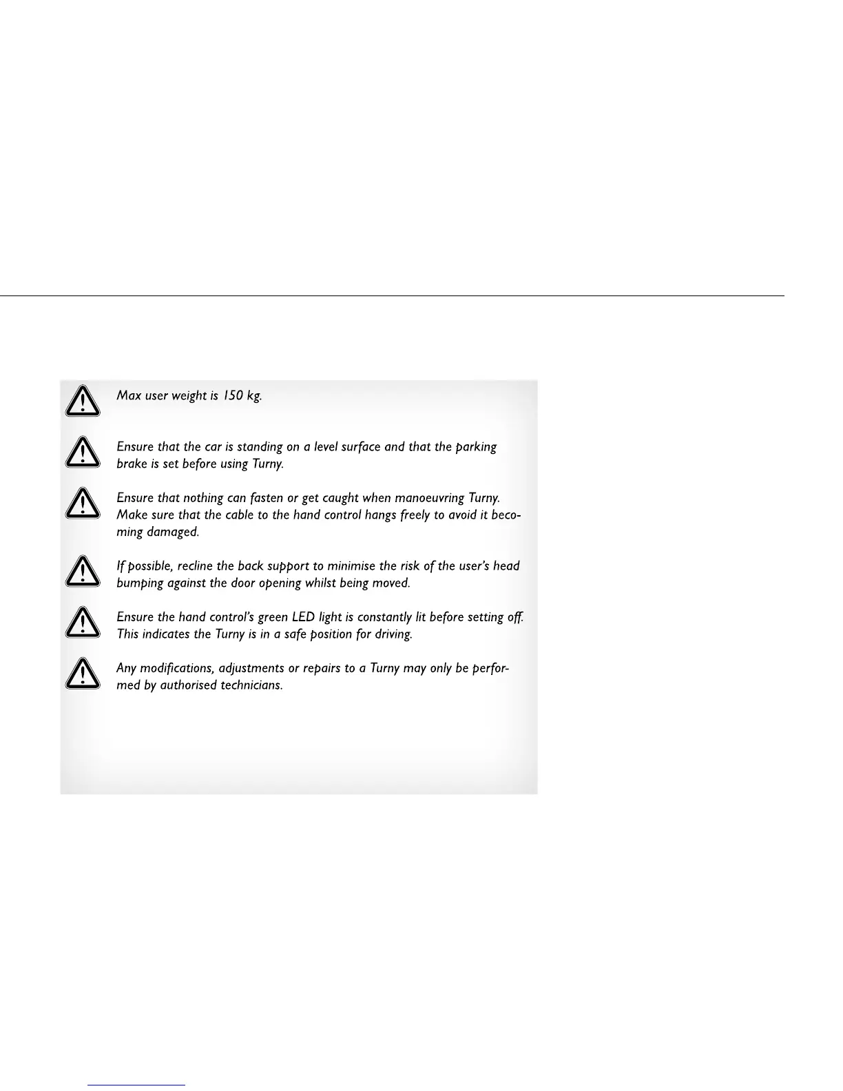 BraunAbility Turny - Safety; Safety Measures