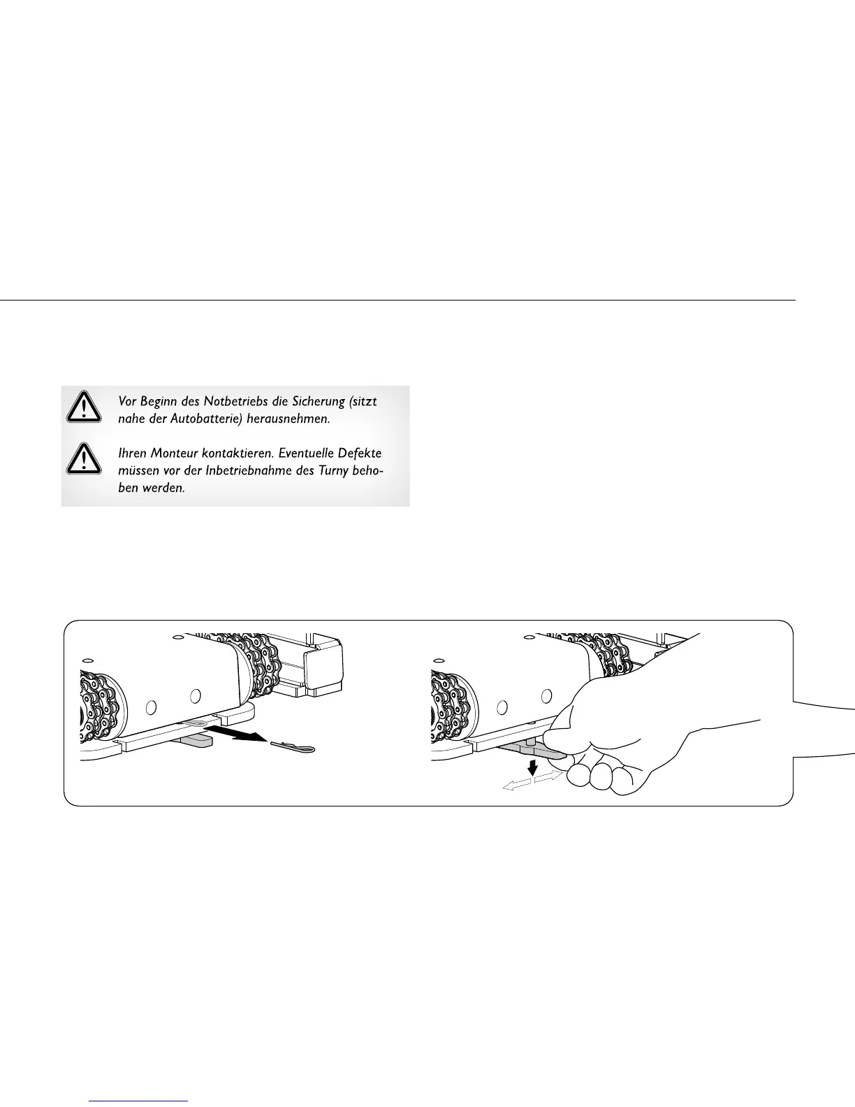 Den gelben Entriegelungshebel vorn am Turny herun-