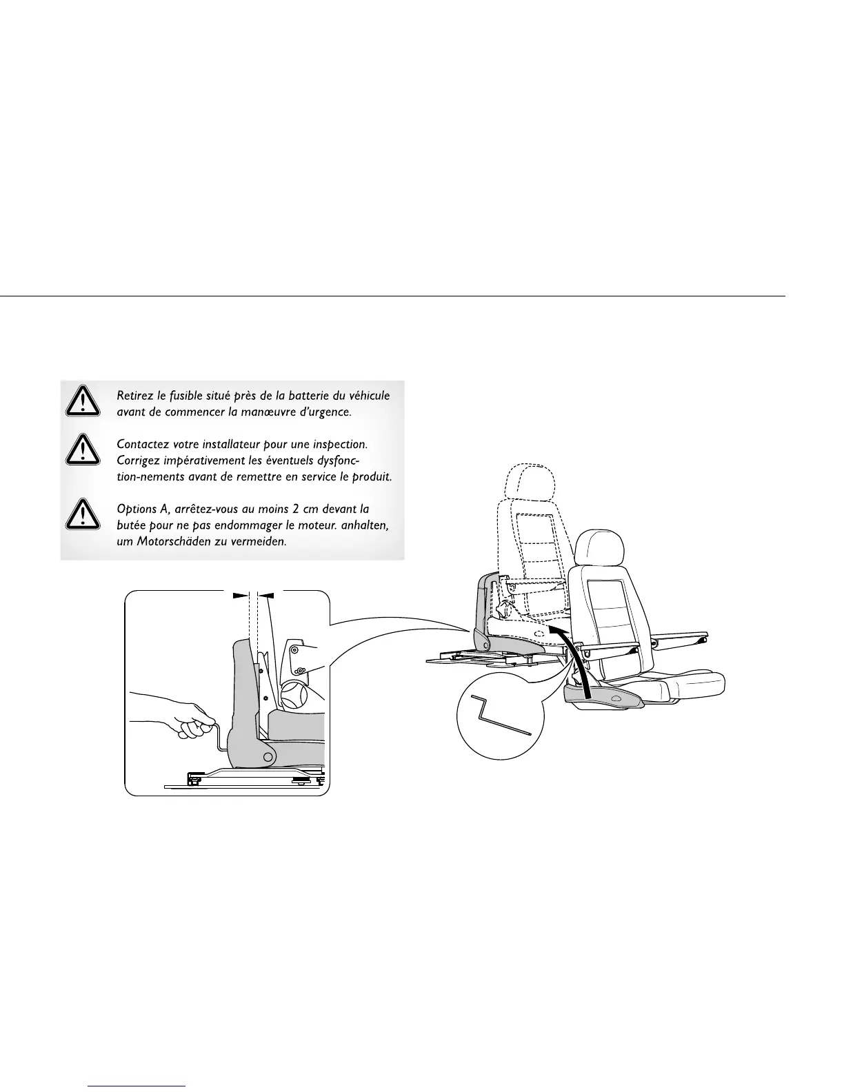 Turny et faites tourner la manivelle jusqu’à ce que le siège soit entière-