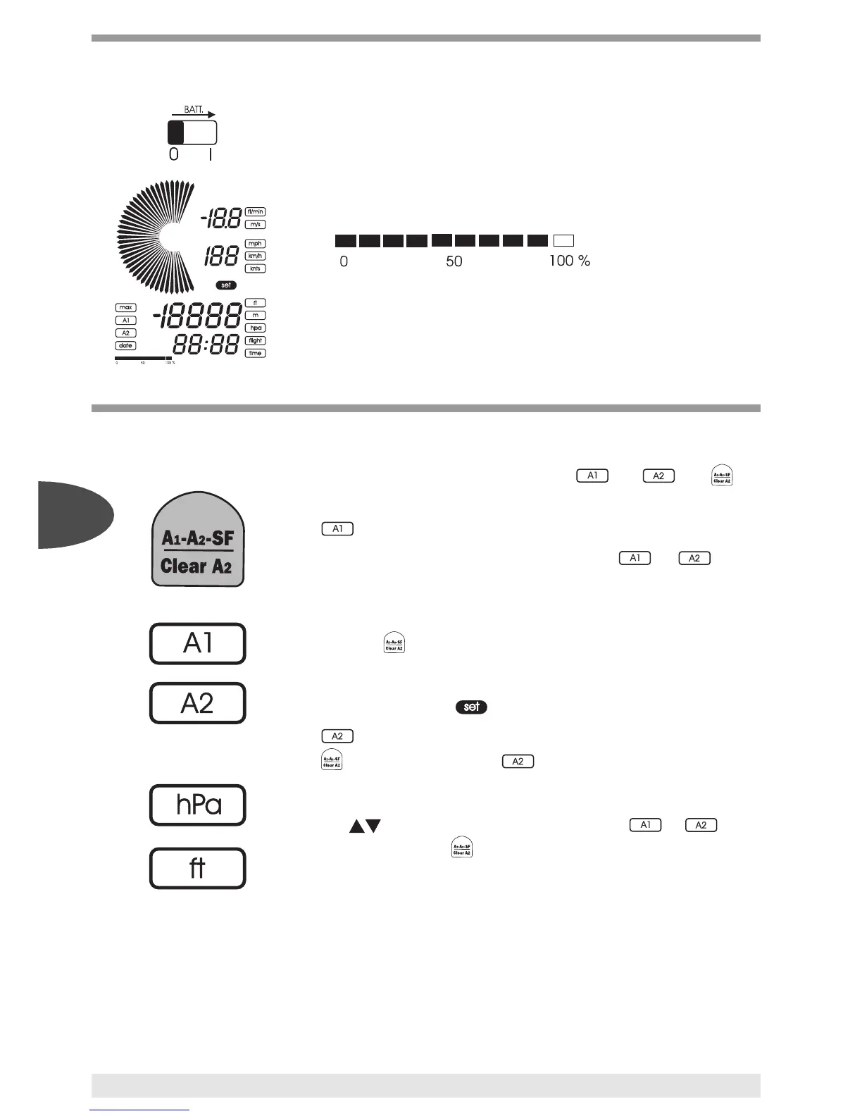 The unit is equipped with two altimeters and . The key
