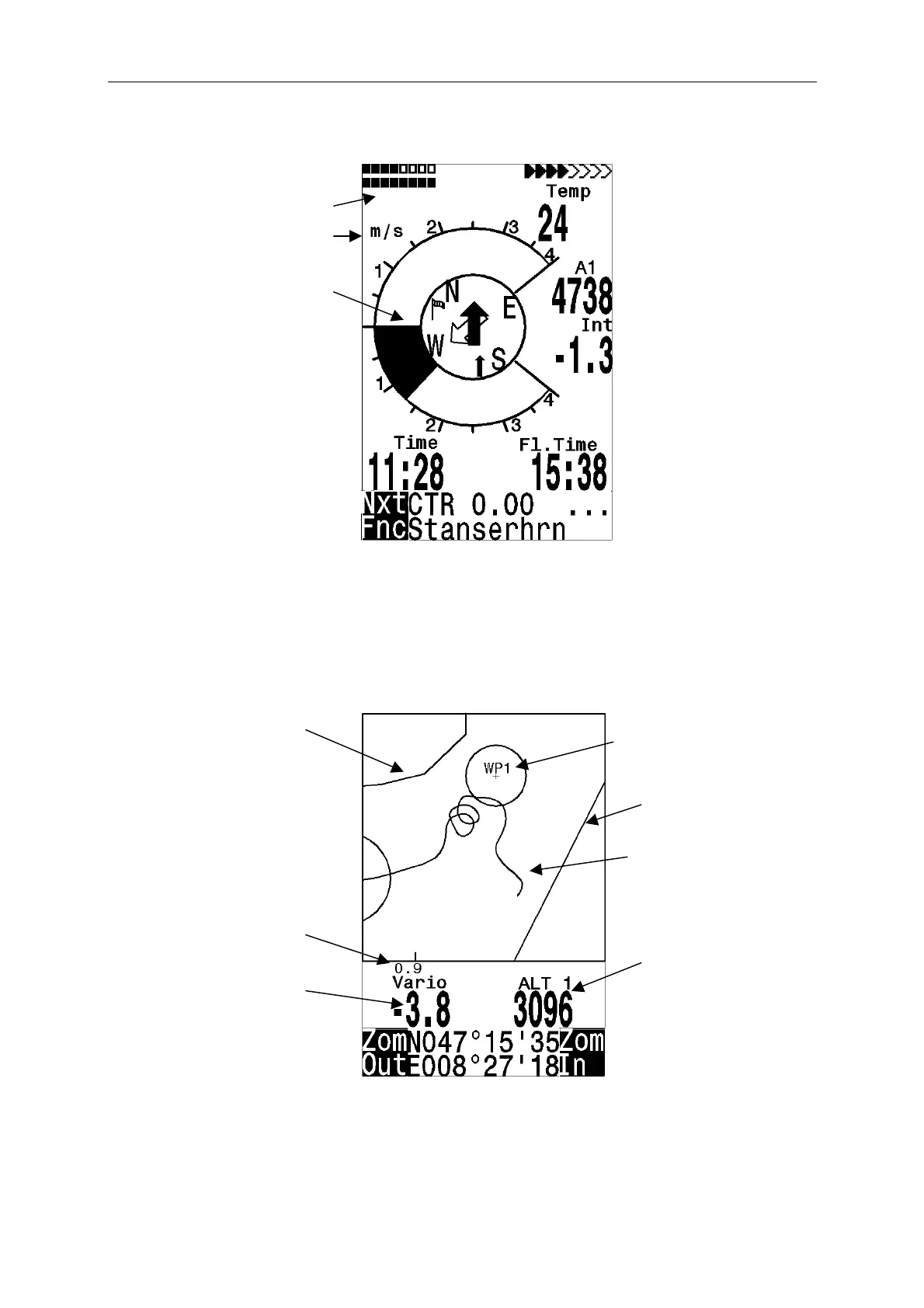 The flight track of saved flights in the memory also can be viewed on the display. The “Show
