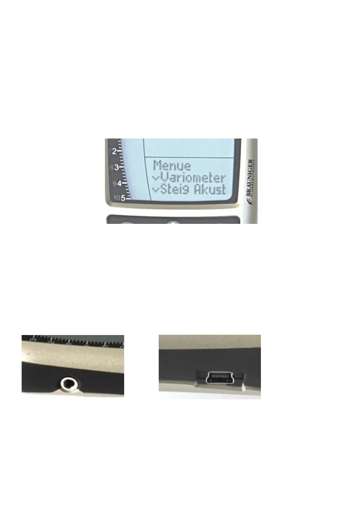 Runde Buchse = Anschluss für optionalen Mini -USB = Datenverbindung zum PC