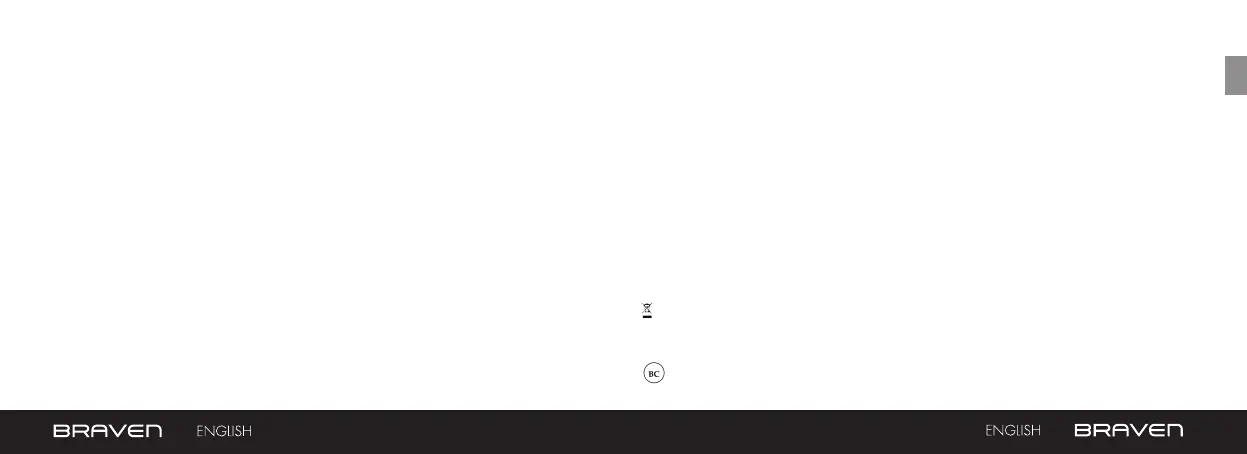 To reduce the risk of re or electric shock, do not expose the BRAVEN to rain or moisture while charging. The BRAVEN should not