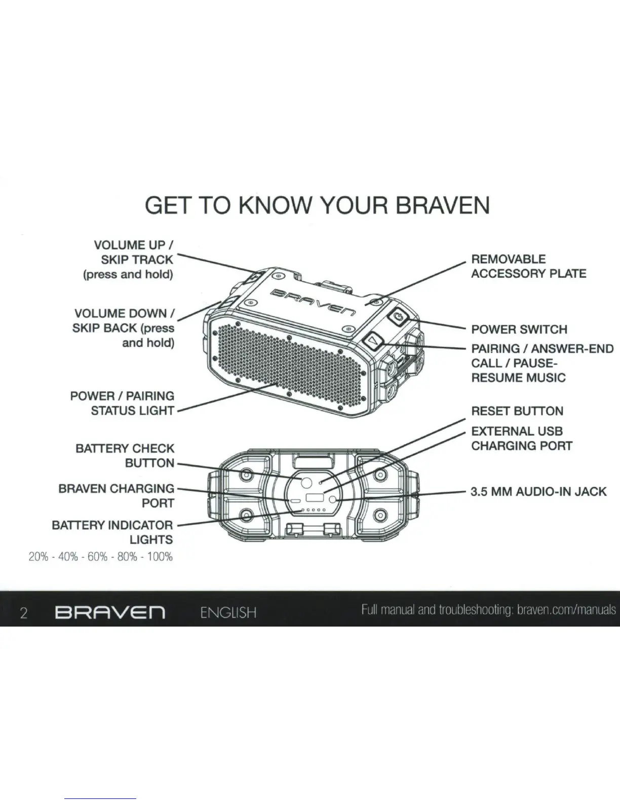Braven BVR-PRO - Get to Know Your BRAVEN; Device Controls Overview; Indicator Lights Explanation; Ports and Connections