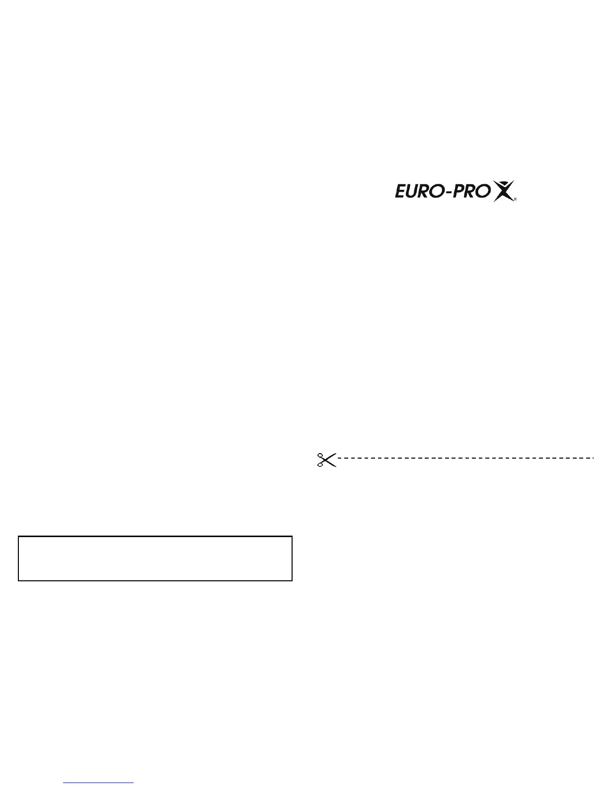 téléphonez au 1 ( 866) 826-6941 ou visitez notre site Web: www.euro-pro.com.