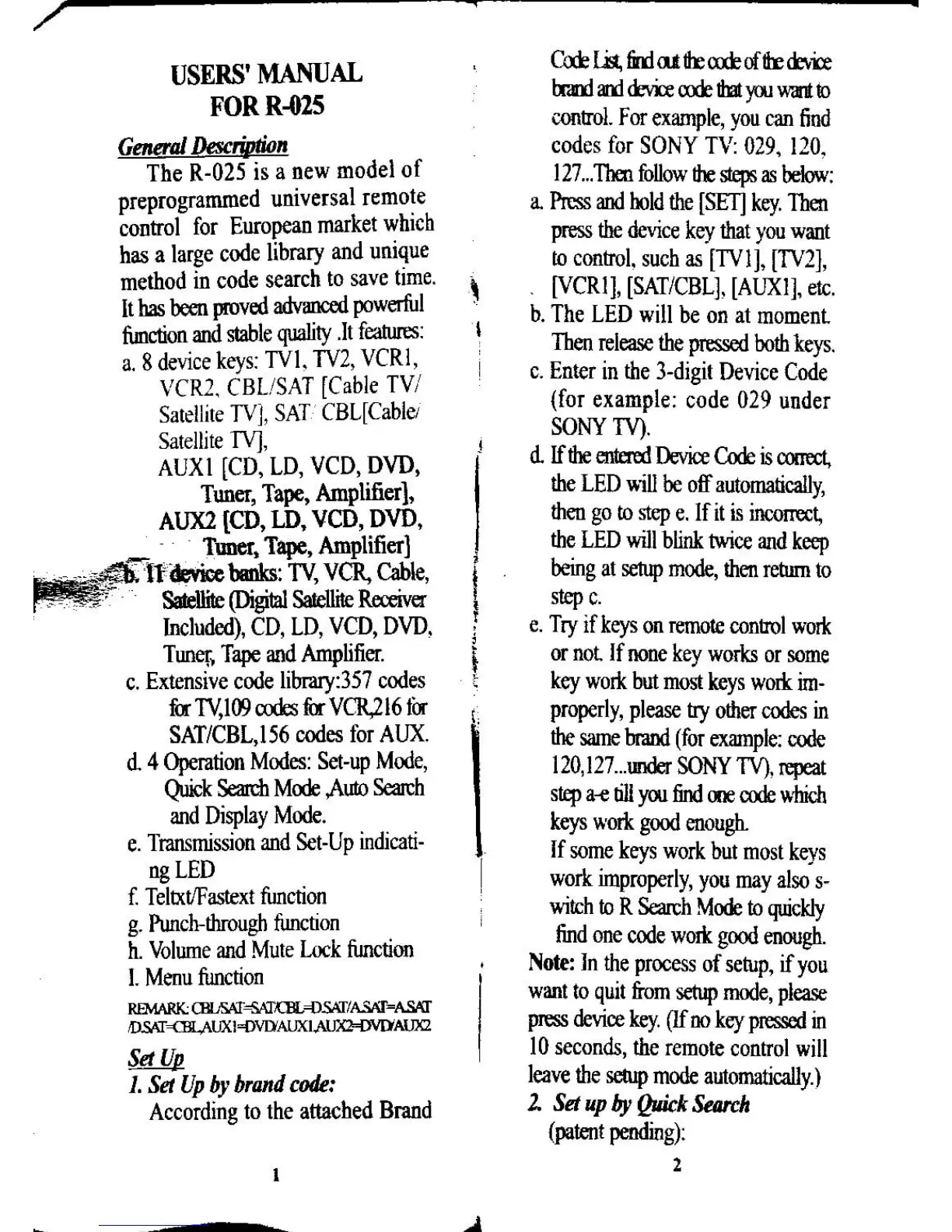 Bravo R-025 - General Description; 8 Device Keys; 11 Device Banks; Extensive Code Library