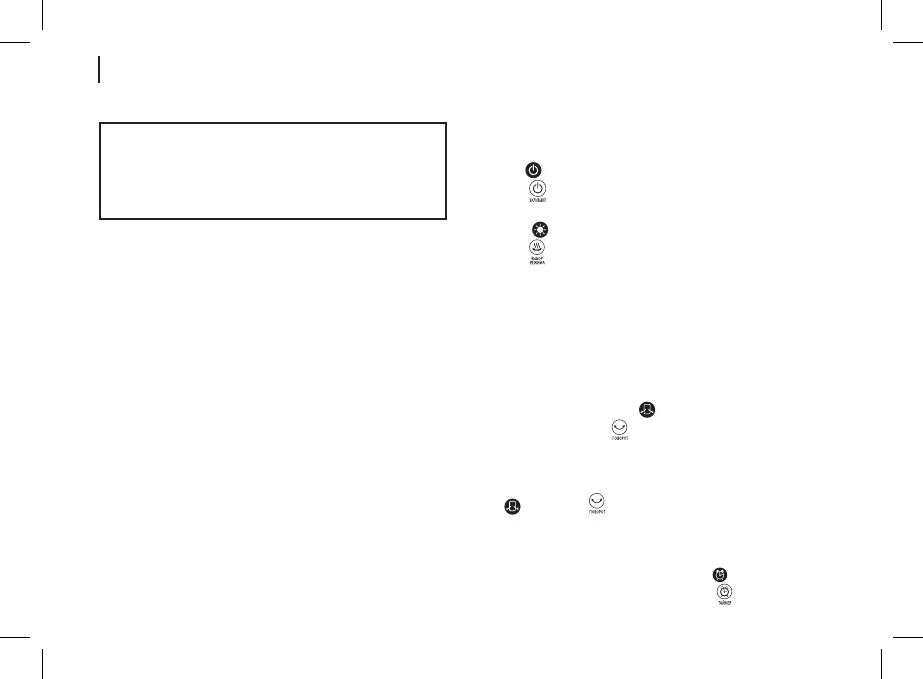 • Switch the fan heater on by pressing the on/o button