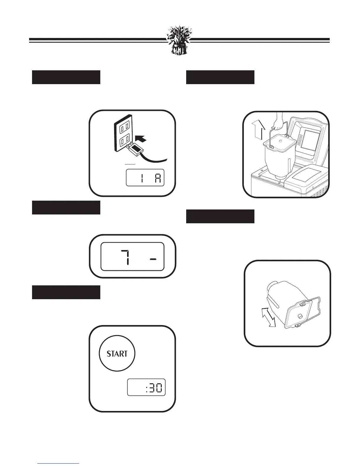 Close the Lid. Plug into 120 V ~ 60 Hz outlet.