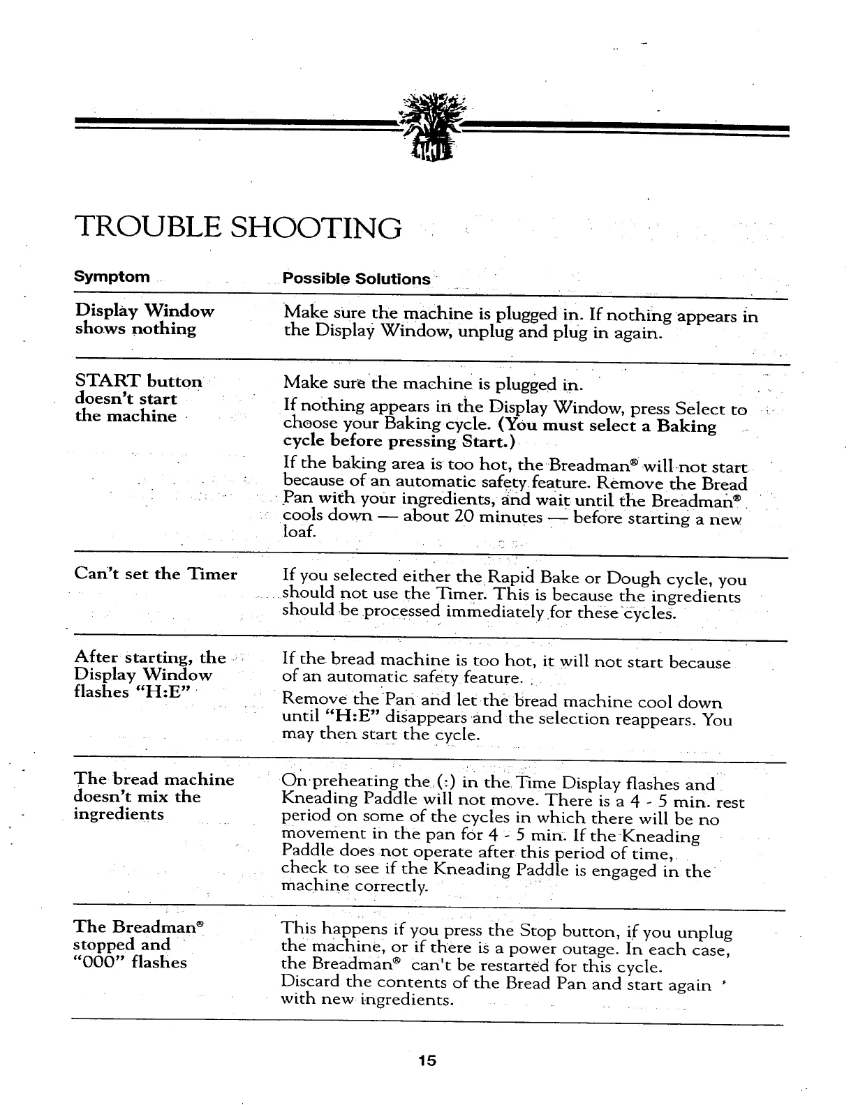 Breadman TR441 - Troubleshooting Common Issues