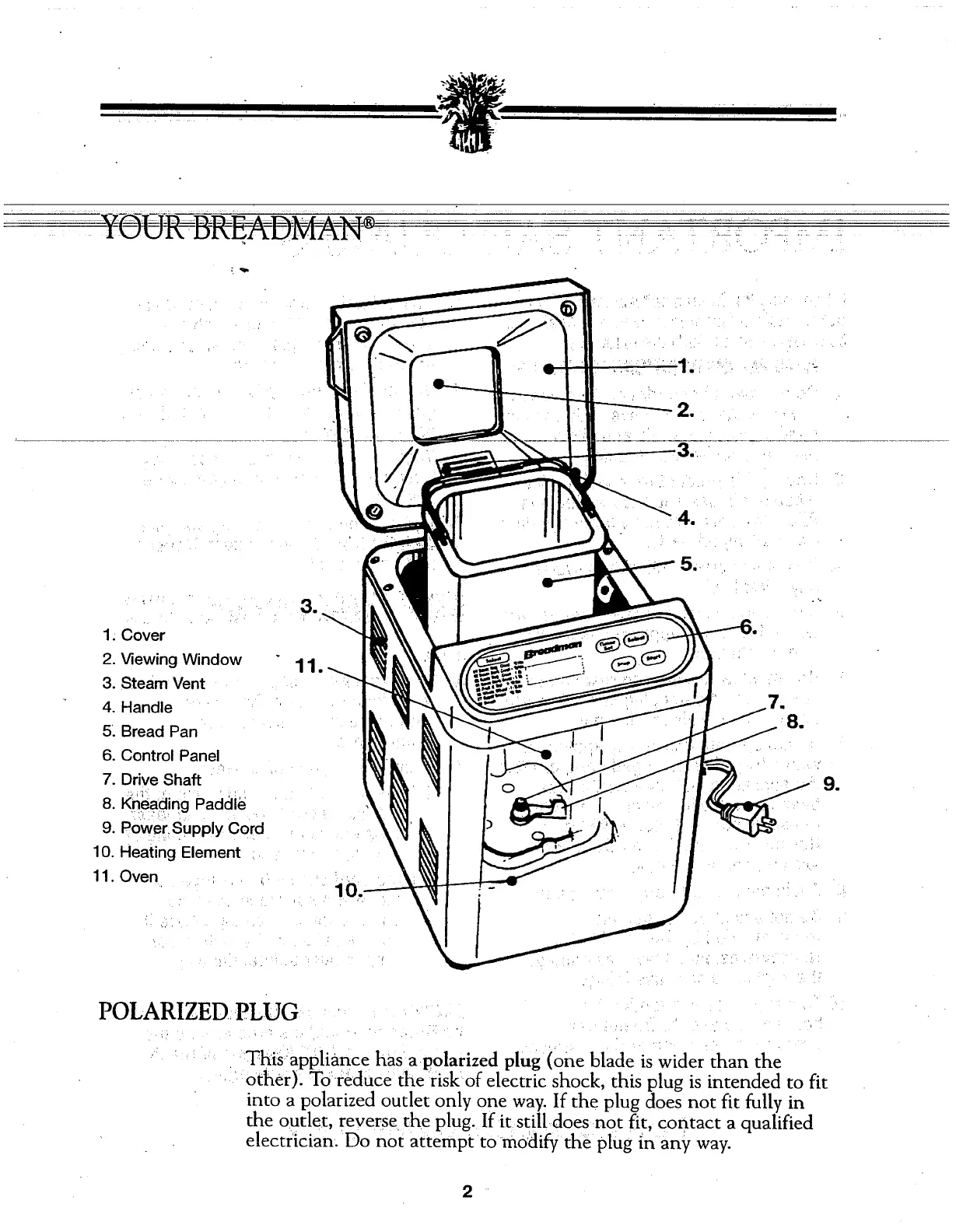 Breadman TR442 - Your Breadman Product Overview; Polarized Plug Safety