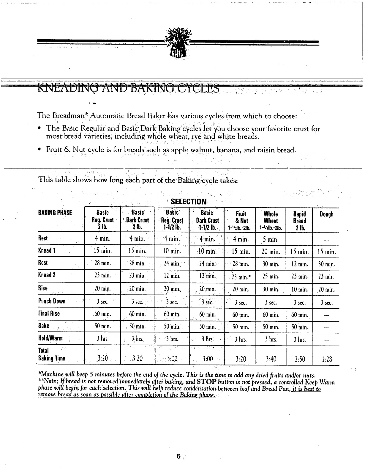 Breadman TR442 - Kneading and Baking Cycles Explained