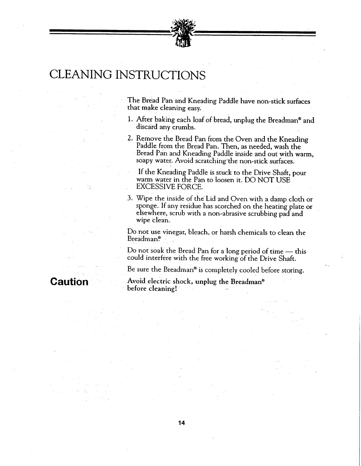 Breadman TR500A - CLEANING INSTRUCTIONS