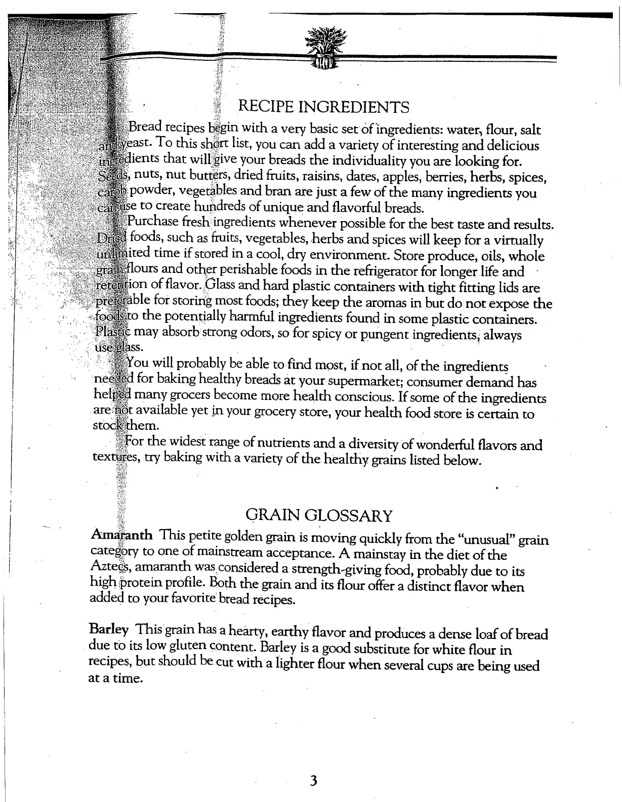 Breadman TR500A - RECIPE BOOKLET: Ingredients