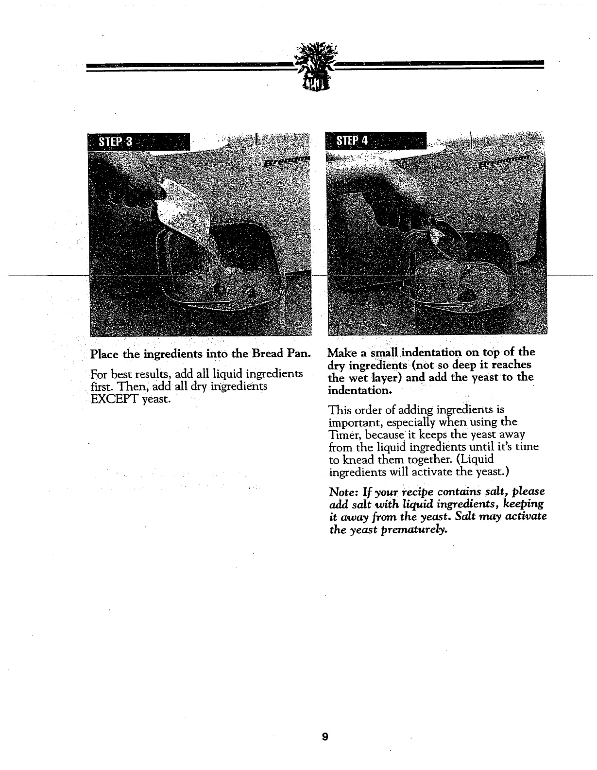 Breadman TR510 - Making Dough and Baking Bread (Continued); Step 3: Add Ingredients; Step 4: Add Yeast