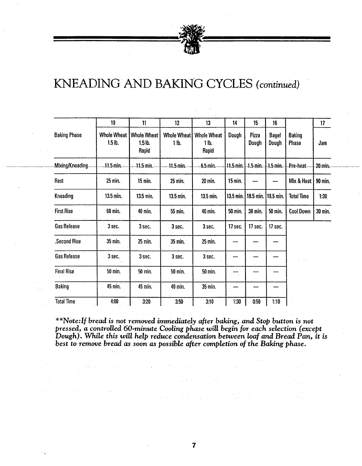 Breadman TR510 - Kneading and Baking Cycles (Continued)