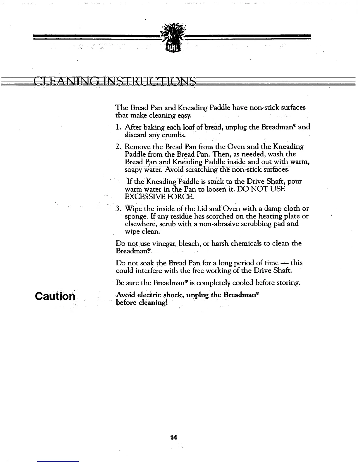 1. After baking each loaf of bread, unplug the Breadman ®and