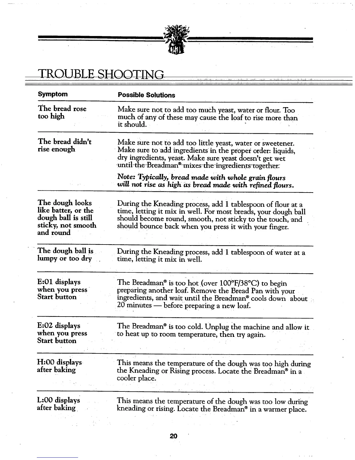 kneading or rising. Locate the Breadman ®in a warmer place.