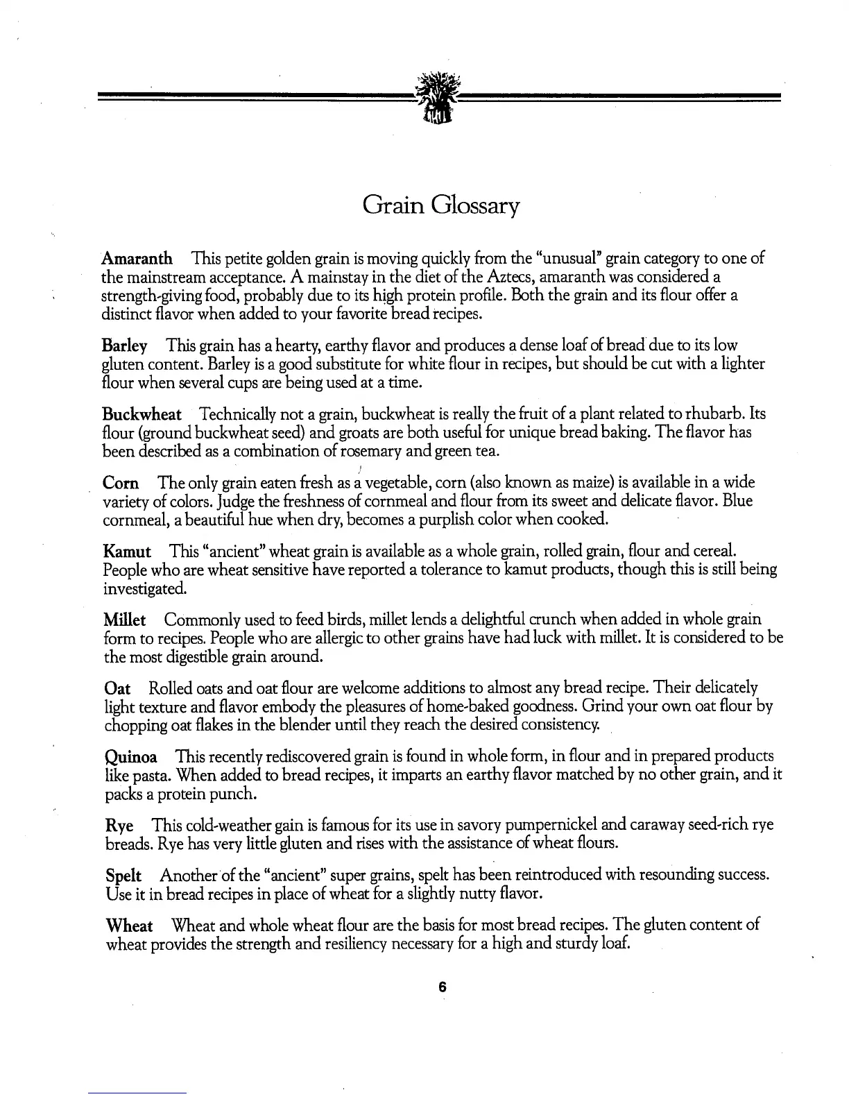 Barley This grain has a hearty, earthy flavor and produces a dense loaf ofbread due to its low