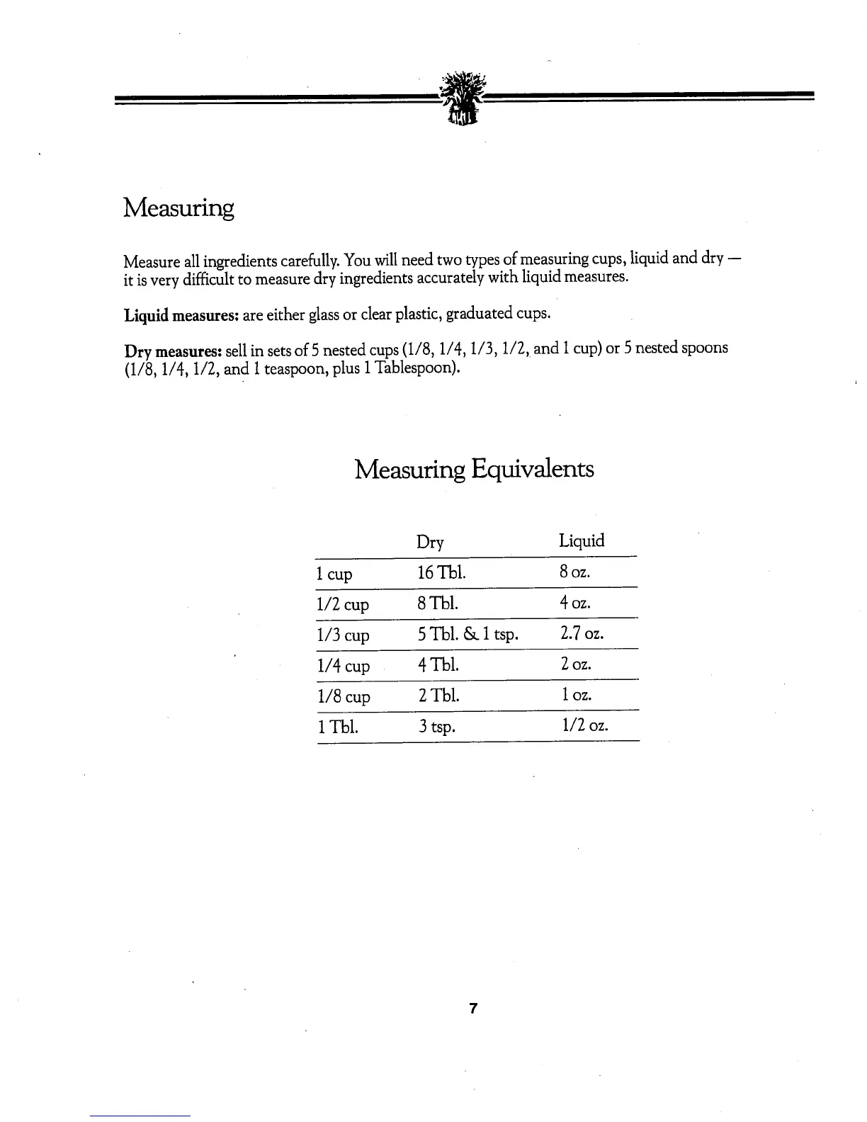 Liquid measures: are either glass or clear plastic, graduated cups.