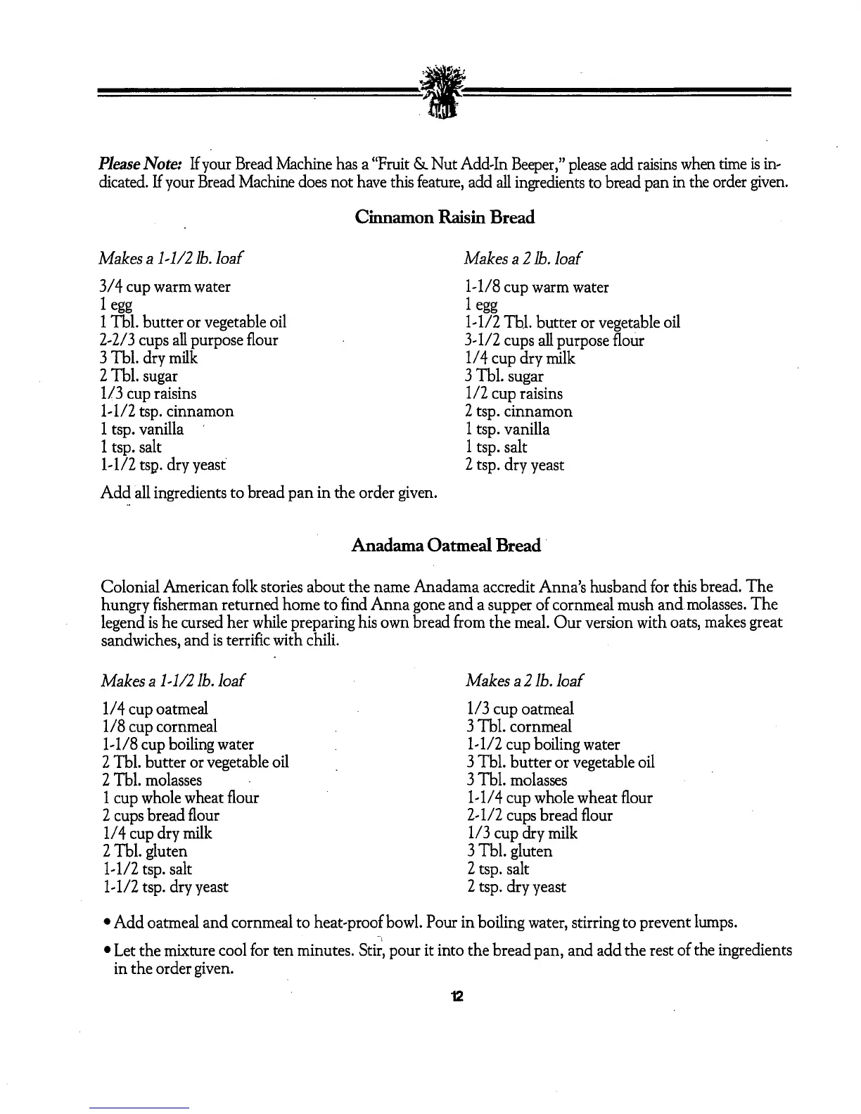 Makes a 1-1/2lb. loaf Makes a2 lb. loaf