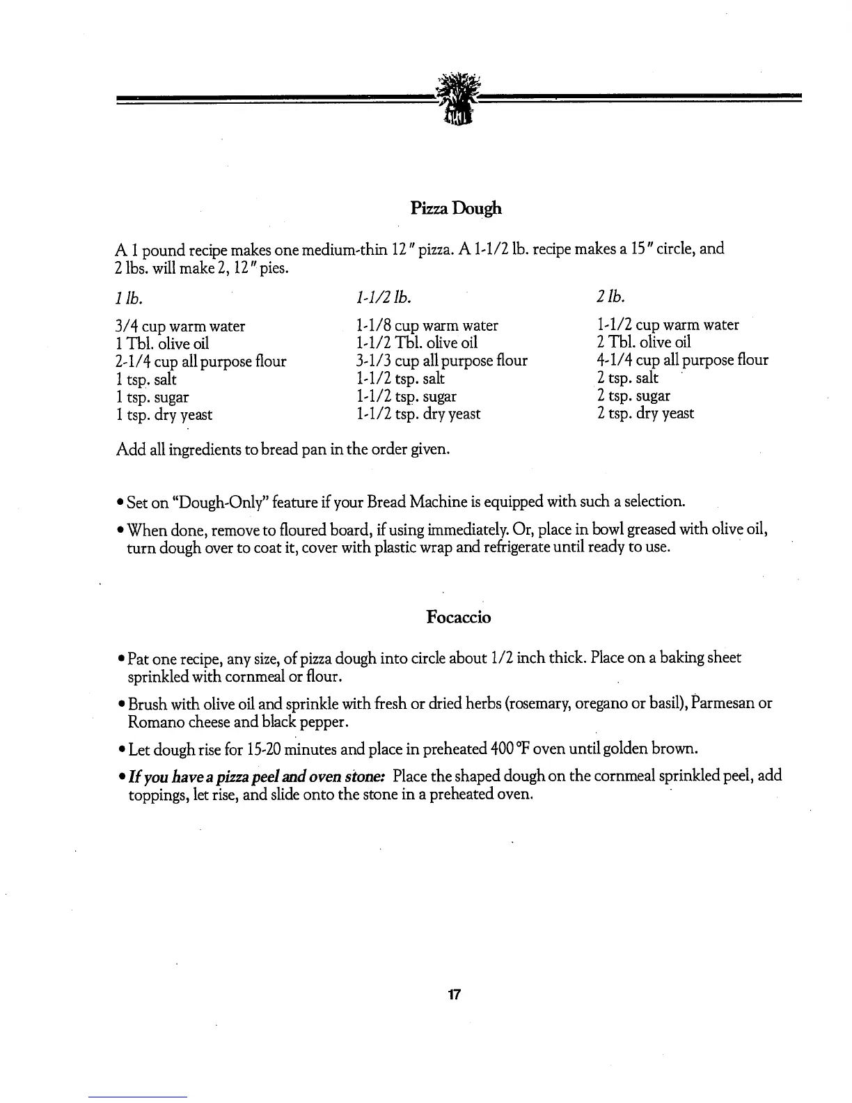 A 1pound recipe makes one medium-thin 12" pizza. A 1-1/2 lb. recipe makes a 15"circle, and