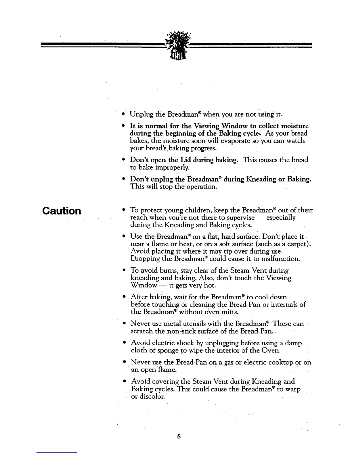• Don't unplug the Breadman ®during Kneading or Baking.
