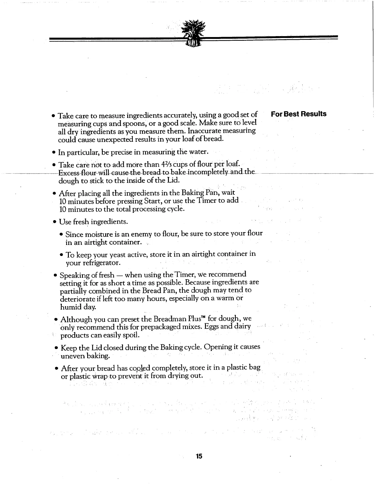 Breadman TR600 - For Best Results