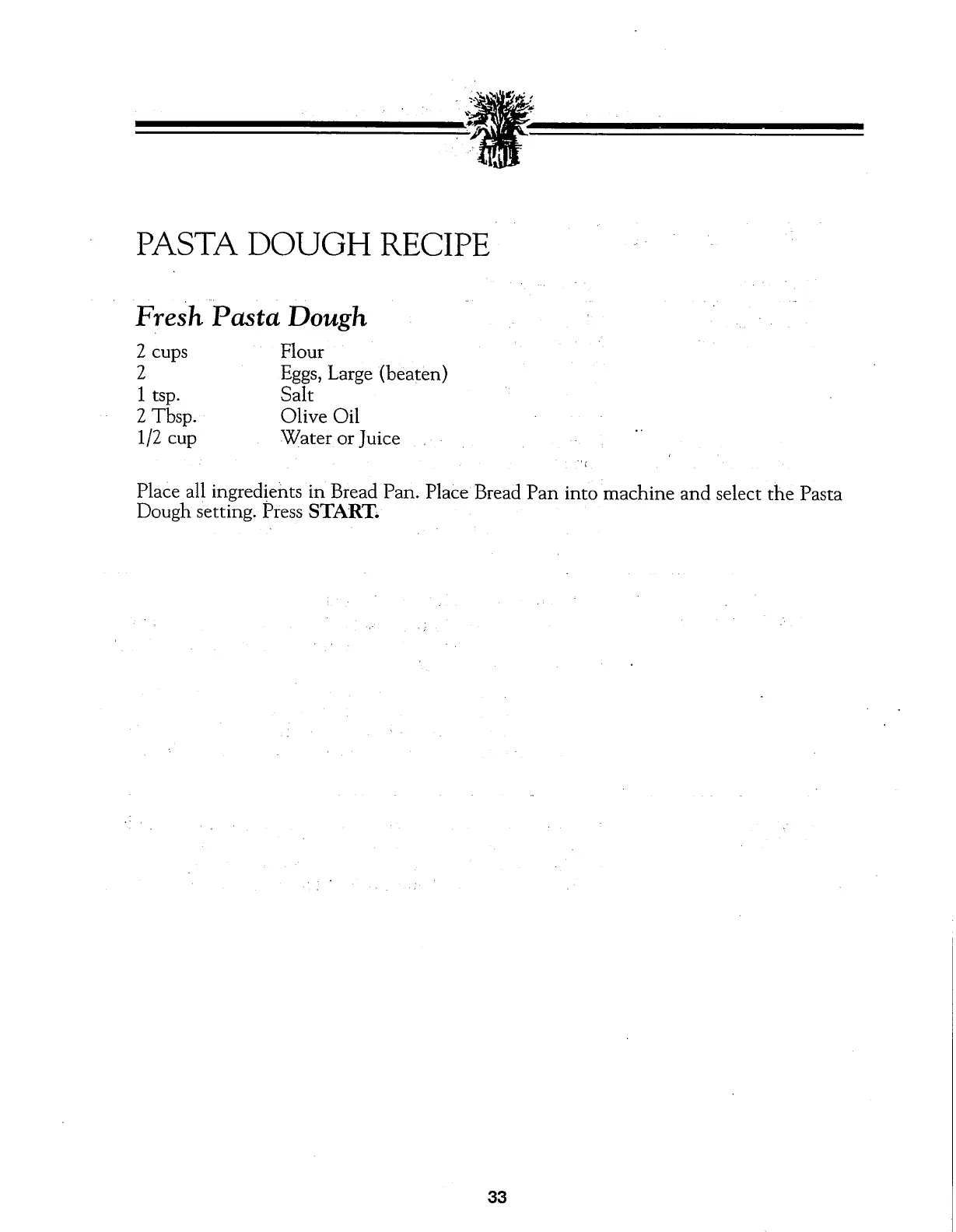 Breadman TR700C - Pasta Dough Recipe; Fresh Pasta Dough