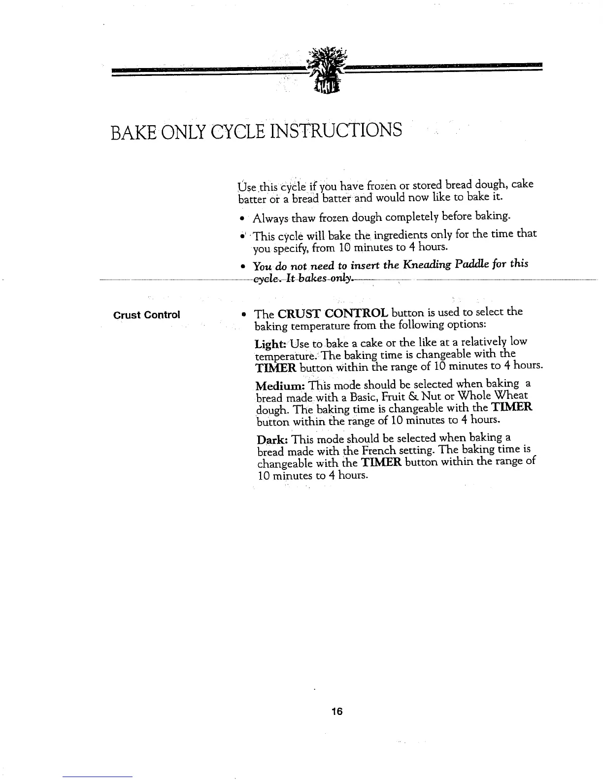 BAKEONLY CYCLE INSTRUCTIONS ., ,